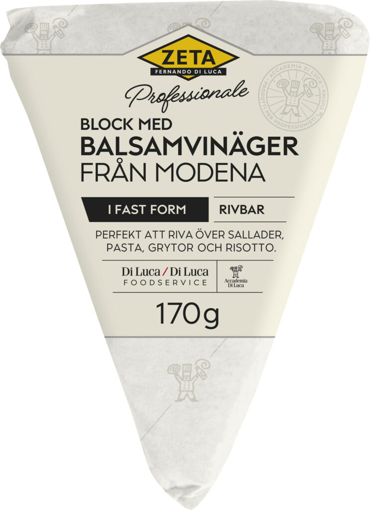 En fast balsamvinäger som går att riva. Den är tillverkad av äkta ”Aceto Balsamico di Modena IGP”
